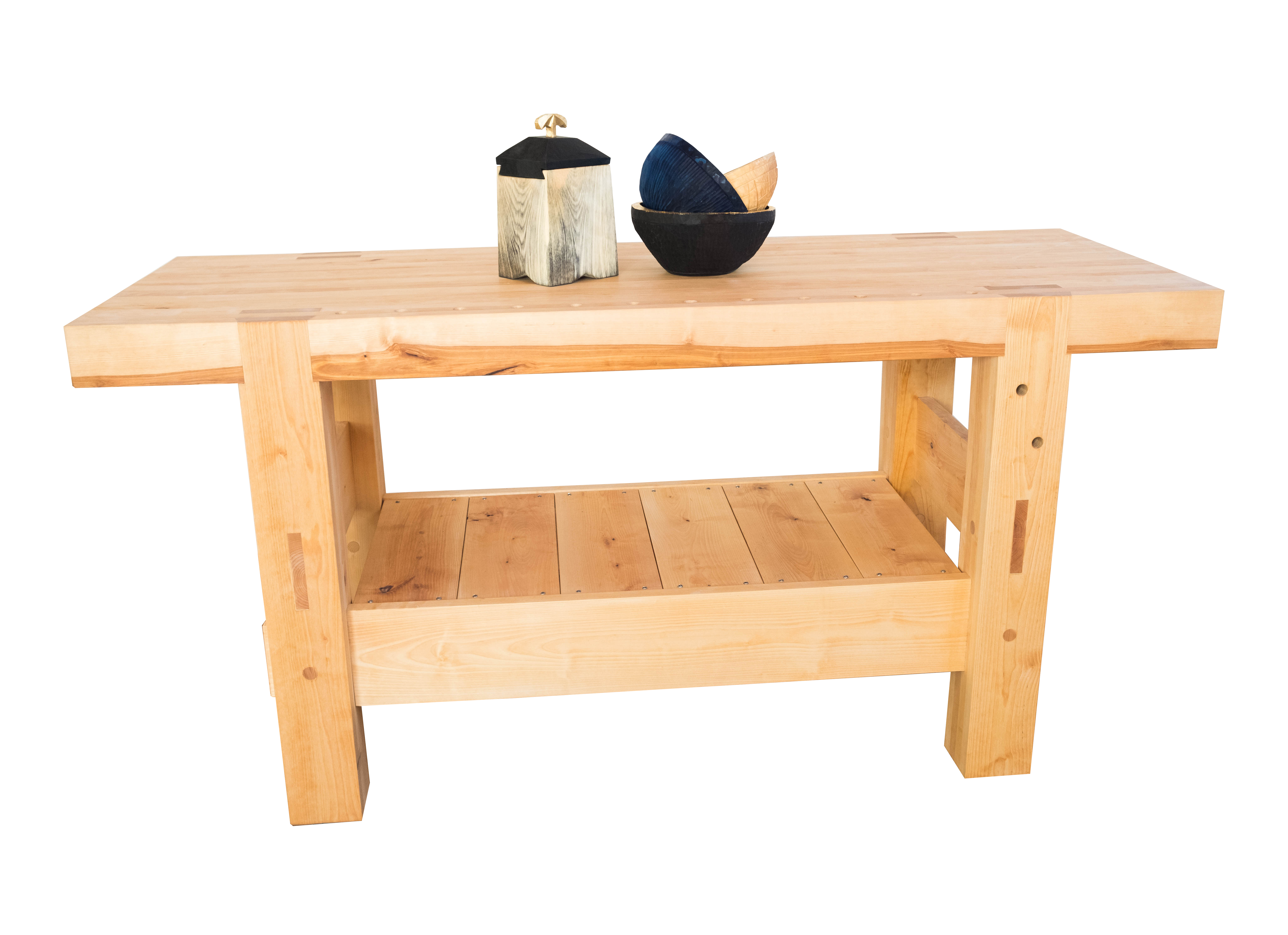”Mitt prov bestod av tre delmoment med olika kriterier kring material och tekniker. Färskt och torrt trä, sammanfogningar, ytbehandling, torkprocesser och tillvägagångssätt stod i fokus i hur och varför jag gjorde arbetet som jag gjorde. Delmoment ett och två bestod av att tillverka en serie skålar och en krympburk av ett träd jag själv valt ut från skogen och dessa är tillverkade enbart med skärande handverktyg och traditionella tekniker. Dessa tekniker fick mötas med mina egna tankar och tillvägagångssätt kring ytbehandling och formspråk. Det tredje delprovet bestod av att tillverka en hyvelbänk som löst baserats på den klassiska Roubo-hyvelbänken men som justerades efter mina egna behov.
