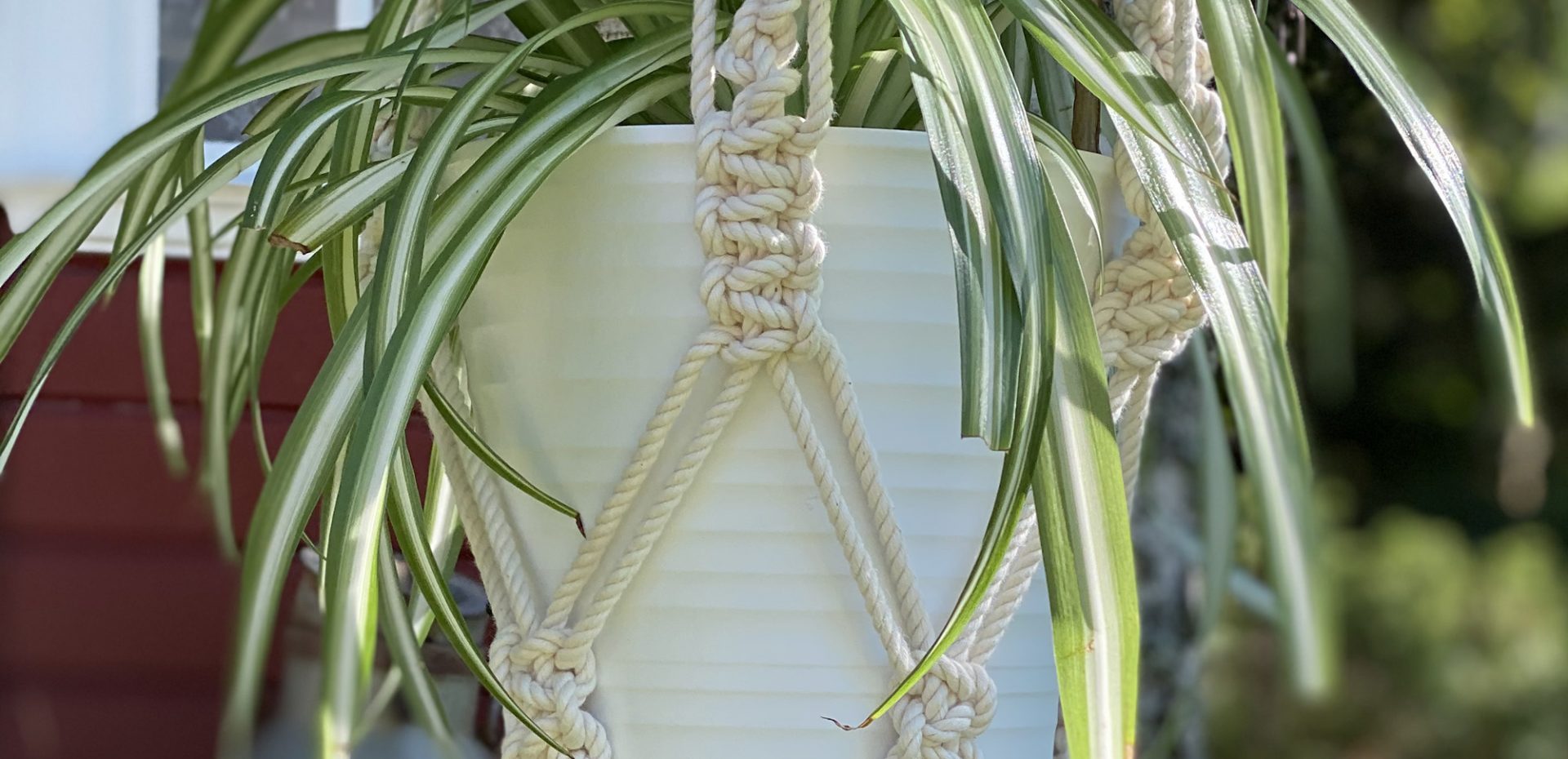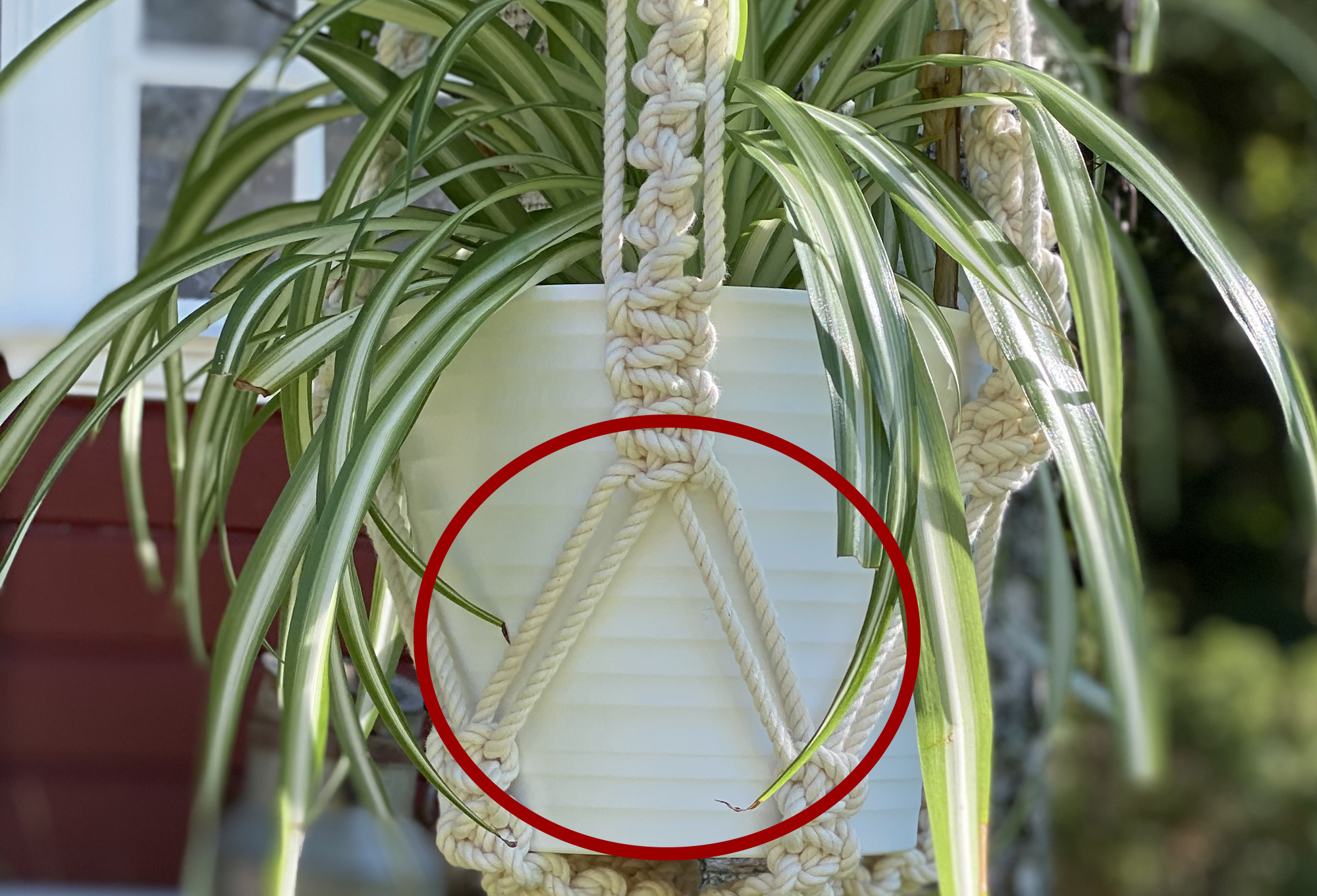 Den som knyter blomampeln av tunnare rep kommer att kunna knyta den aningen längre än i det här exemplet.