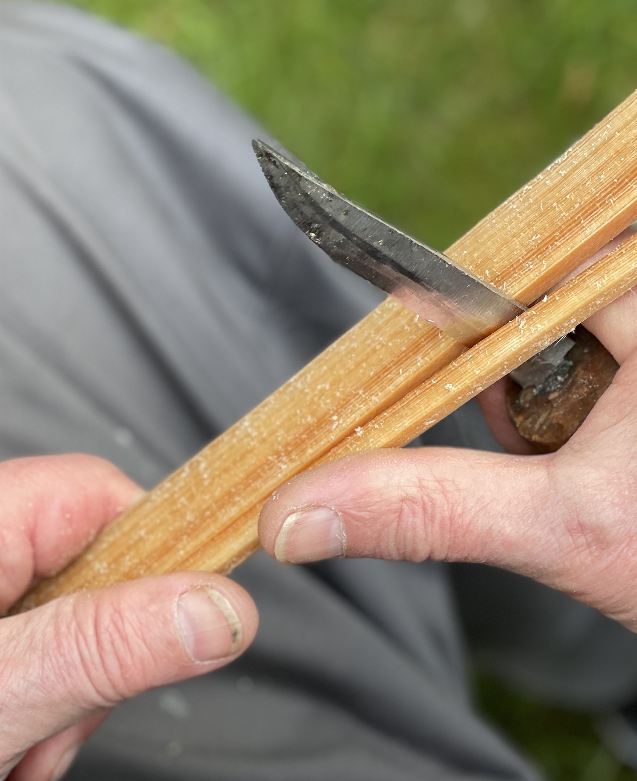 Klyvning av furu långs årsringen för att ta fram material till en Hedaredskorg. Foto: Annika Holmdahl