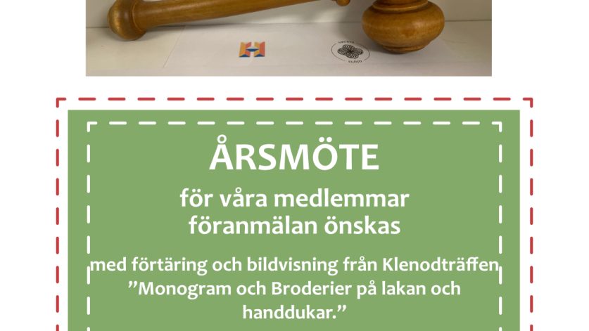 Vi visar Bildspel från KLENOD-träffen (Monogram och broderier på lakan och handdukar), och visar