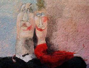 Lunchen intar vi på restaurangen ”Gardeners” innan vi far vidare till Blå gården i Veinge där textilkonstnären AnnLis Krüger håller till. Hennes skapande är Inspirerad av ”Livets teater” och med humorn som underton, betraktar hon hur vi är med och mot varandra. Manligt, kvinnligt, mänskligt. Med moulinégarn, silkestrådar och tyger och med symaskinsnålen som penna växer, de textila bilderna fram. På Blå Gården i Veinge bor och har AnnLis sin ateljé och ett litet galleri. Vi tar eftermiddagsfikat i AnnLis trädgård innan vi beger oss hemåt och beräknas anlända till Växjö vid ca 18.00