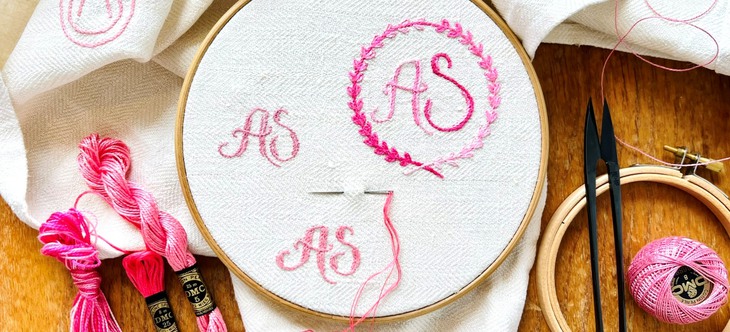 Inspirerade av gamla märkböcker och våra förmödrars hantverksskatter utformar vi sedan egna monogram, bomärken och namnchiffer att brodera på, till exempel kökshanddukar, lakan, örngott eller förvaringspåsar.