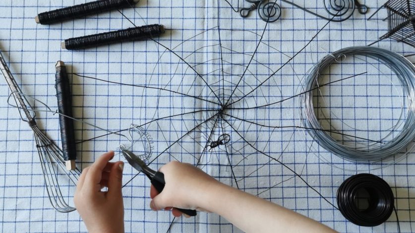 Skapa läskiga spindelnät och farliga kryp av ståltråd.