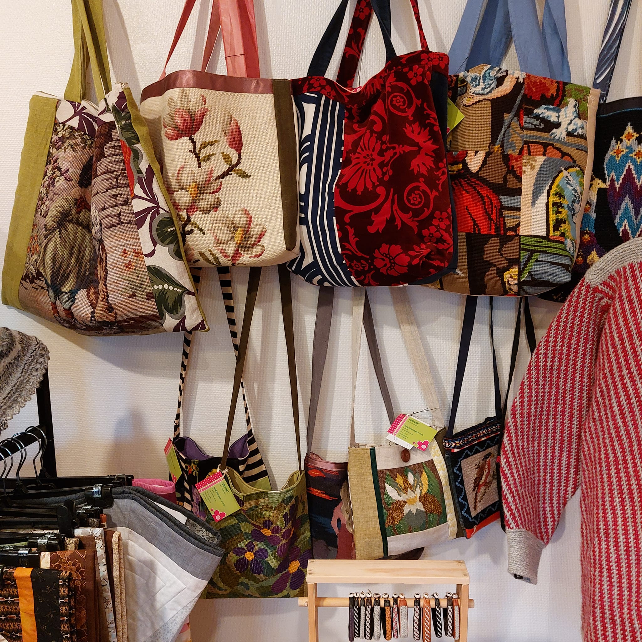 - Återbruksslöjd väskor, badrockar, kuddar Foto: Stenhuset