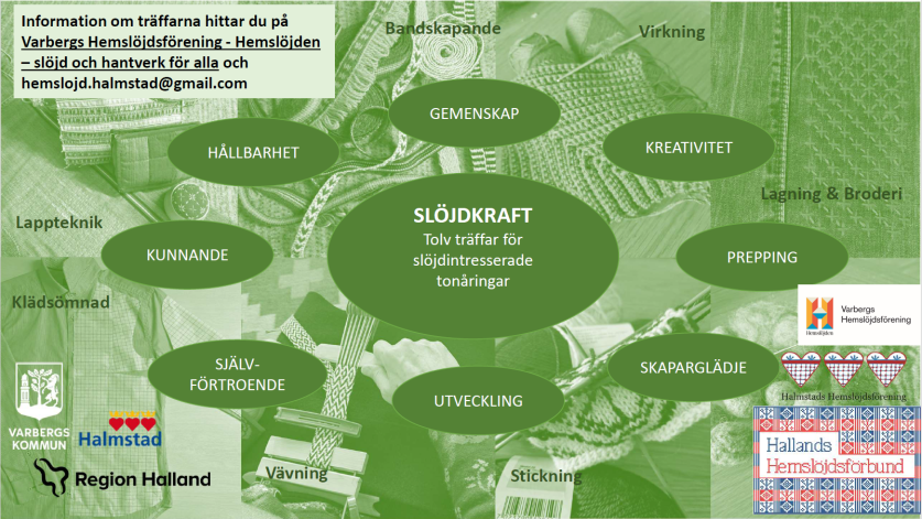 Slöjdkraft – ett utvecklingsprojekt i regi av Hallands hemslöjdsförbund med stöd av Region Halland och Varbergs och Halmstads kommuner.