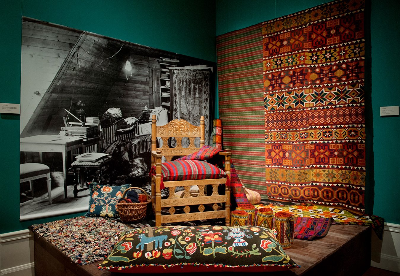 Bild från utställning med äldre textilier.